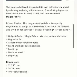 Anthropologie The Colette Cropped Wide-Leg Pants Magic Fabric Edition Sz 28 NWT