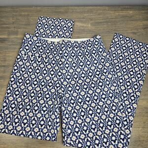Anthropologie The Essential Collection Pant Blue Geometric Pattern Ankle Size 0