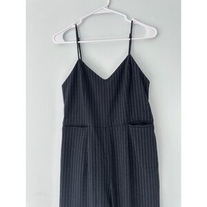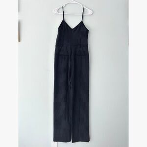 Anthropologie The Essential Jumpsuit Navy Pinstripe Flare One Piece size 0