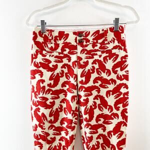 Anthropologie The Essential Slim Cropped Trouser Pants Lobster Print Red 0