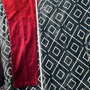 Anthropologie The Essential Slim Red Velvet Pants Size 14 Tall Preppy Holiday