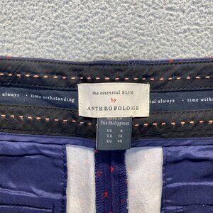 Anthropologie The Essential Slim Trouser Pant Size 8 Stretch Polka Dot Blue Red