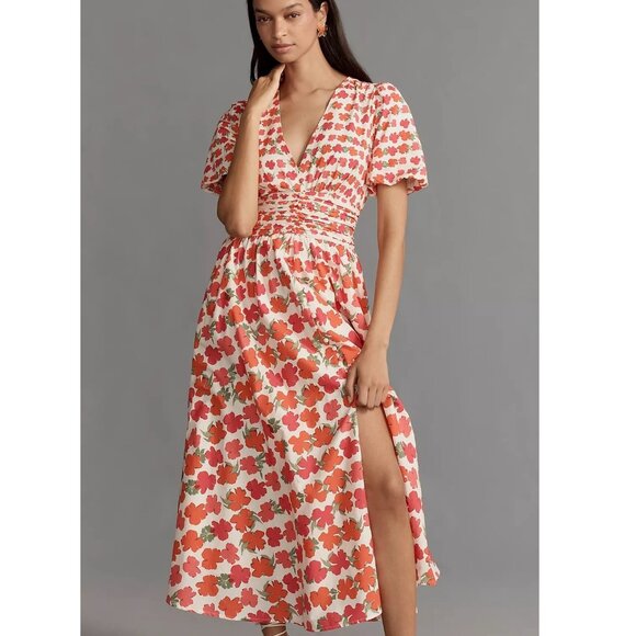 Anthropologie The Katerina Button-Front Dress Maxi Poppy Floral Plus Size 2X NWT