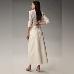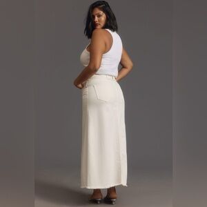 Anthropologie The Madi Front-Slit Denim Midi Skirt by Pilcro Ivory White NWT