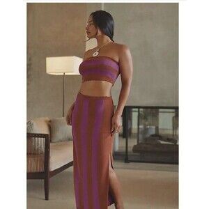 Anthropologie The Mandy Striped Slim Midi Skirt By Calandine Sz Md Cedar NWT Length approximately 38 inches