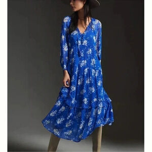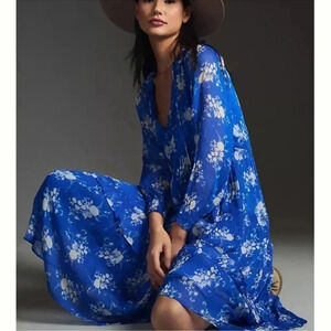 Anthropologie The Marais Printed Chiffon Maxi Dress Blue Floral