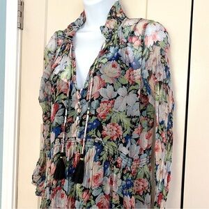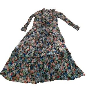 Anthropologie The Marais Printed Chiffon Maxi Dress Size XS Sheer Ruffled Tiers Flowy Relaxed Boho-style Lightweight Whimsical Cottagecore Romantic Fairy
