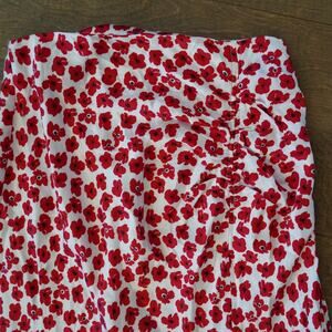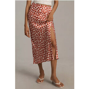 Anthropologie The Mel Ruched Side-Slit Midi Satin Skirt Maeve Sz S Red