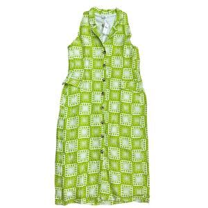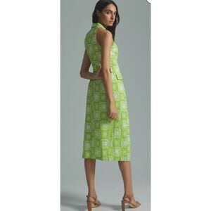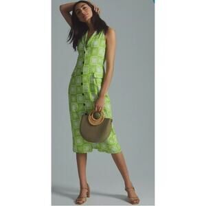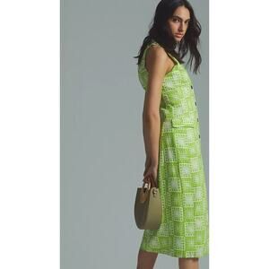 Anthropologie The Odells Button-Front Lime Green & White Midi Dress Size 12