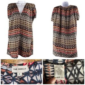 Anthropologie The Odells Silk Shift Dress Size Small Abstract Geometric Print
