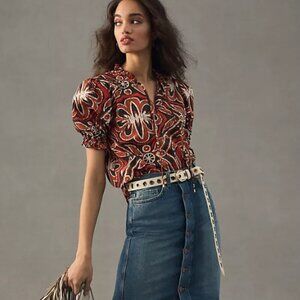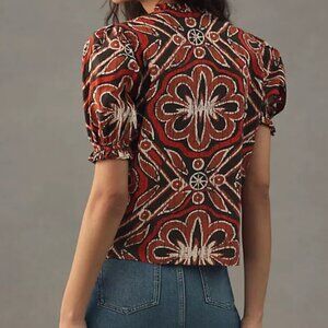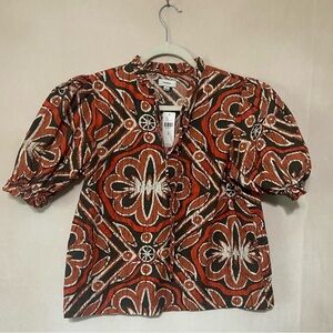 Anthropologie The Odells women's S Jacy blouse puff sleeve split neck NWT