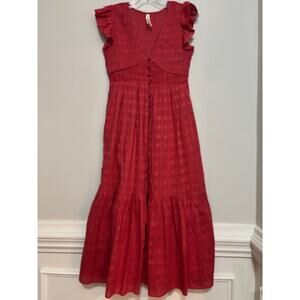 Anthropologie The Peregrine Midi Dress Size XS Petite Smocked Tiered Stretch XSP