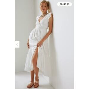 anthropologie peregrine dress, white smocked midi dress, flutter sleeve tiered dress, cottagecore bridal dress, lightweight summer dress, boho white dress, garden party outfit, anthropologie wedding guest dress, feminine flowy midi