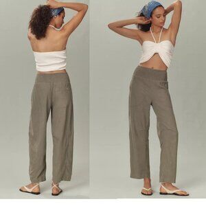 Anthropologie The Reese Smocked Pull-On Barrel Pants size L green color