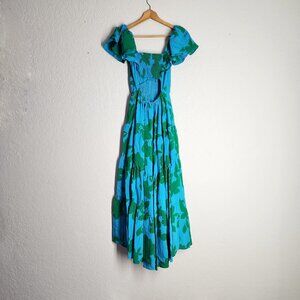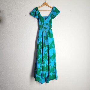 Anthropologie The Silverlake Flutter-Sleeve Dress with pockets in blue green XS