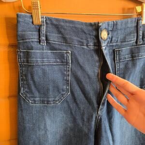 Beautiful crop wide leg jeans, semi stretchy comfort fit. No puckering.