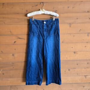 Anthropologie The Skipper High Rise Crop Wide Leg Jeans Pilcro 28 Dark Wash