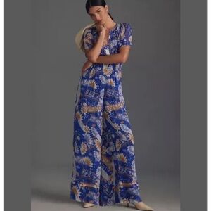 Anthropologie The Somerset Jumpsuit Chiffon Edition Blue Size S Tall NEW