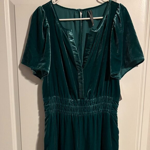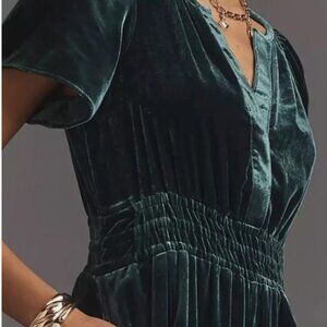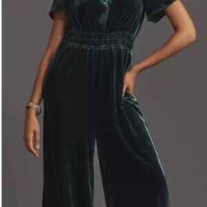 Anthropologie The Somerset Jumpsuit: Velvet Edition - Teal Green Blue NWT