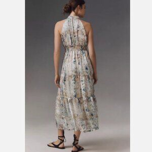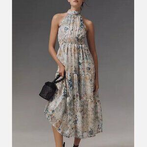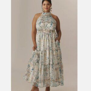 Anthropologie The Somerset Maxi Dress Halter Edition Blue Floral Size L NWT