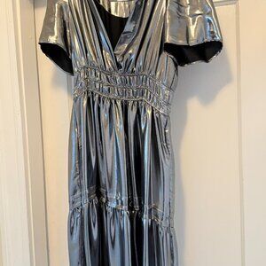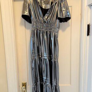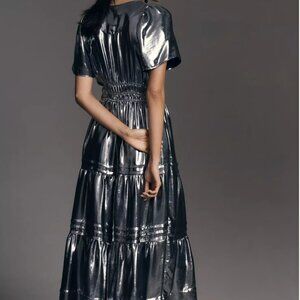 Anthropologie The Somerset Maxi Dress Metallic Edition Tiered Smock Silver XS