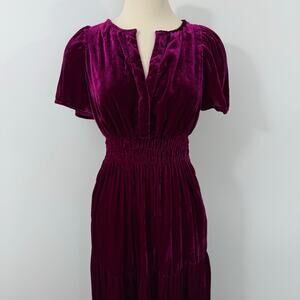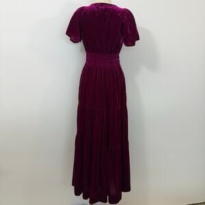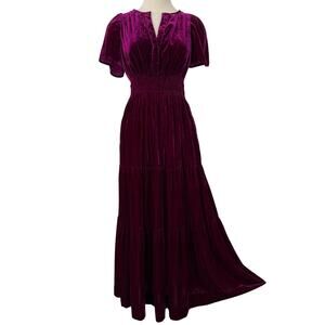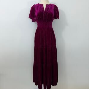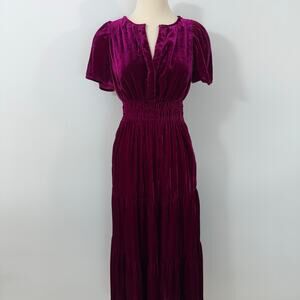 Anthropologie The Somerset Maxi Dress Velvet Edition Magenta Pink XS