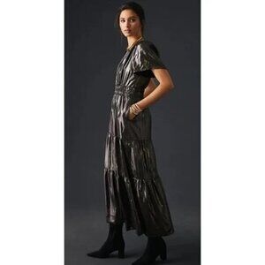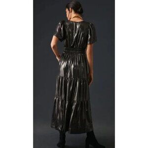 Anthropologie The Somerset Maxi Tiered Dress Metallic Shine