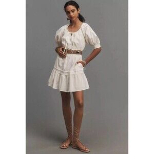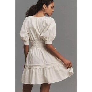 Anthropologie The Somerset Mini Dress Puff Sleeve Smocked White Boho LP 282932