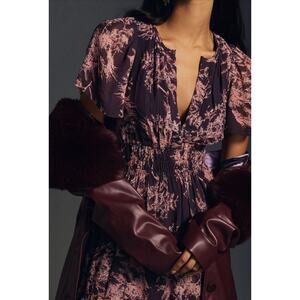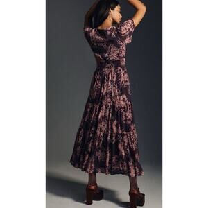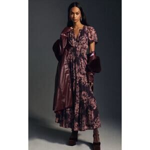 Anthropologie The Somerset Purple Floral Chiffon Maxi Dress Trad Wife Dress XS