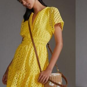 Anthropologie The Somerset Yellow Eyelet Mini Dress Small PETITE