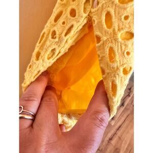 This eyelet mini dress from Anthropologie is the perfect addition to your wardrobe! The vibrant yellow color is sure to turn heads, while the delicate eyelet detailing adds a touch of femininity. Dress is in great condition and ready for a new home.