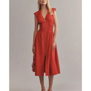 Anthropologie The Tommie Cotton Zip-Front Midi Dress Red XL NWT