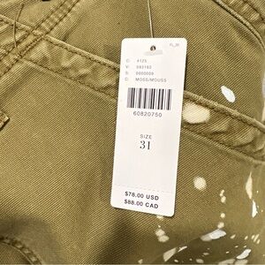 Anthropologie The Wanderer paint splatter utility Moss Shorts Size 31