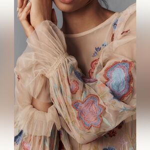 Anthropologie The Layla Long Sleeve appliqué Mesh Blouse in Light Sand NWOT