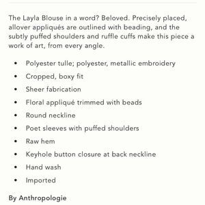 Anthropologie The Layla Long Sleeve appliqué Mesh Blouse