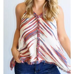 Anthropologie Thml Women's Fringe Handkerchief Hem Tank Top Multicolor SZ Medium