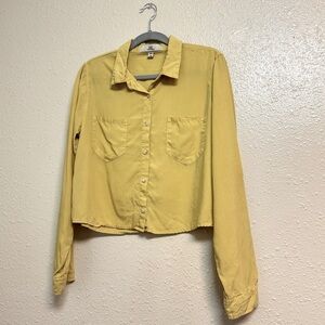 Anthropologie Thread & Supply Yellow Cropped Boxy Fit Button Down Blouse