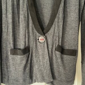 Anthropologie Three Dots Cardigan Size Small Boyfriend Block Knit Gray Black