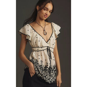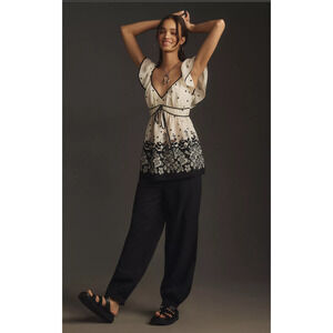 Anthropologie Tie-Back Shirred Blouse - New Small