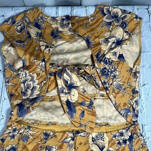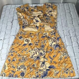 Anthropologie Tie-Back Utility Mini Dress Floral Mustard Blue Size 10