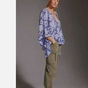 Anthropologie Tie-Front Blue Floral Caftan One Size