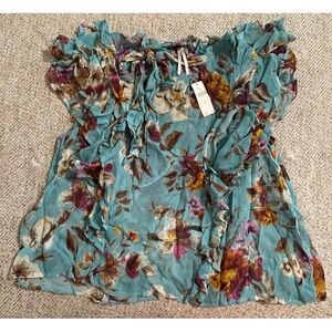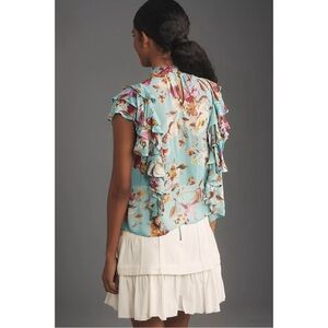 Anthropologie Tie-Neck Sheer Ruffled Blouse NWT SZ XL