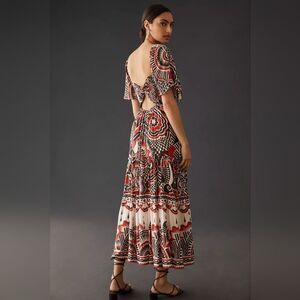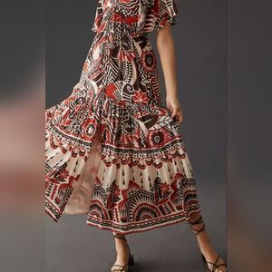New with tags Anthropologie Tiered Maxi Dress In Red Motif Size Extra Small.