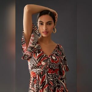 Anthropologie Tiered Maxi Dress In Red Motif Size Extra Small NWT