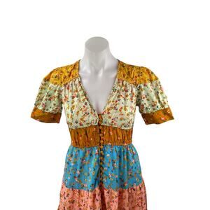 Anthropologie Tiered & True Multicolor Floral Colorblock V Neck Maxi Dress XXS