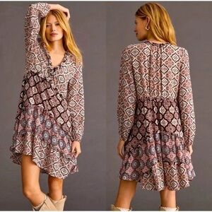 Anthropologie Tiered V Neck Boho Mini Dress - Size Small - Peasant Floral