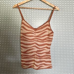 Knit/Sweater material with gorgeous tiger print and metallic gold thread throughout.