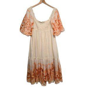 Anthropologie Tina Puff Sleeved Embroidered Maxi Dress Womens Large Romantic