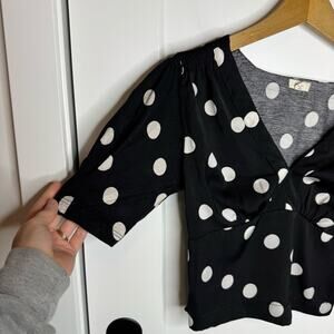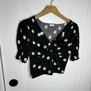 Anthropologie Tiny Adelaide Black & White Polka Dot Crop Blouse Size XXS