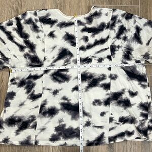 Anthropologie. Tiny Petites. Size large. Beautiful sequined and embroidered blouse. Tie dye black and white. The embellished part of the fabric is a little poofier than shirt. It’s out of a sheer fabric so not sure if it’s meant to be or not. In great shape. Beautiful blouse for holidays.
